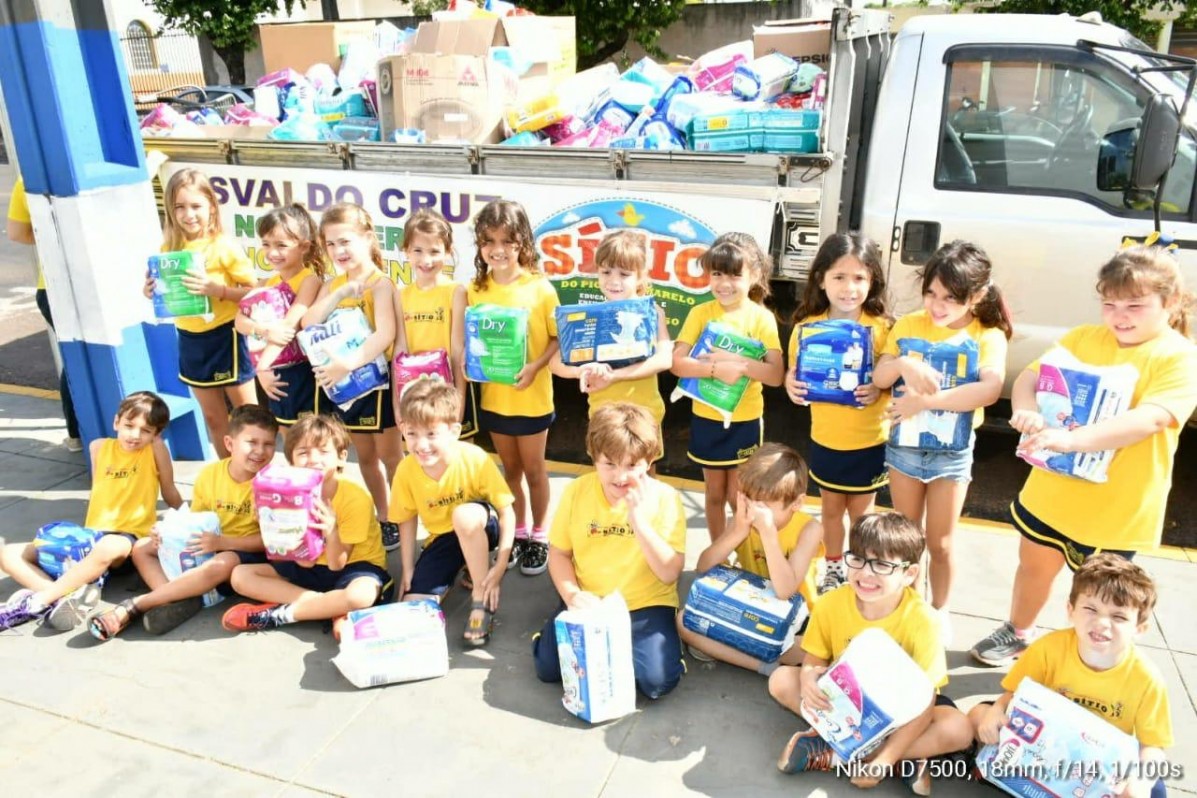 O Centro Educacional Sítio do Pica-Pau Amarelo de Osvaldo Cruz realizou entre os alunos do 1º ao 5º anos do ensino fundamental, uma Ação Solidária que arrecadou 4.857 fraldas geriátricas que foram doadas ao Lar São Vicente de Paulo de Osvaldo Cruz.