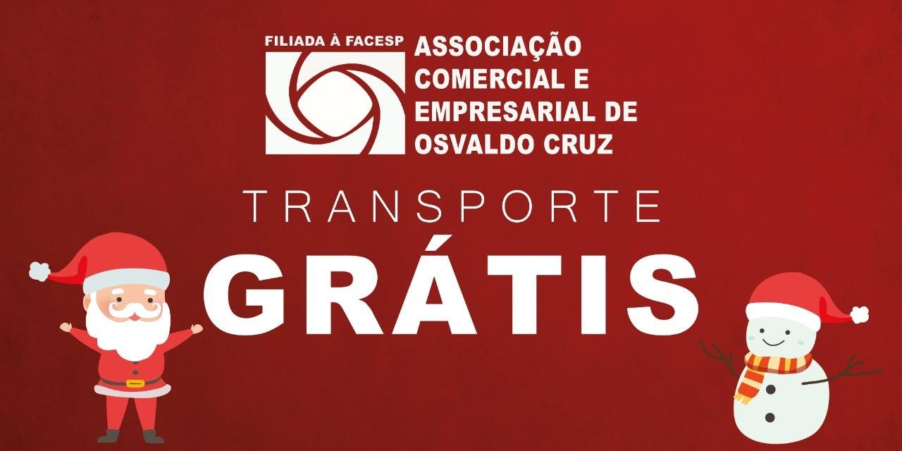 A Associação Comercial e Empresarial de Osvaldo Cruz comunica a todos que vai disponibilizar um ônibus para trazer os moradores dos bairros de Osvaldo Cruz para o calçadão, durante o período em que o comércio funciona em horário especial de final de ano.