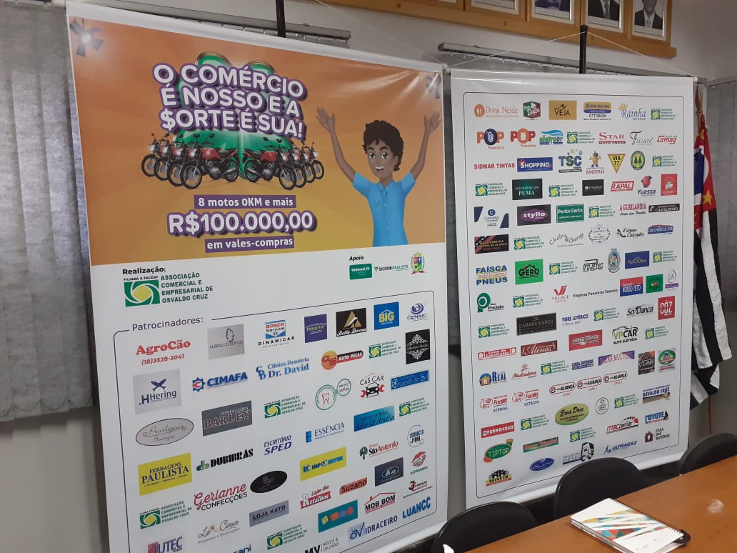 A ACEOC – Associação Comercial e Empresarial de Osvaldo Cruz inicia neste mês a Campanha “O COMÉRCIO É NOSSO E A $ORTE É SUA!”. A iniciativa tem por objetivo auxiliar as empresas participantes no fortalecimento de vendas e deve seguir até o dia 8 de janeiro de 2022. Serão 8 sorteios durante período da Campanha: