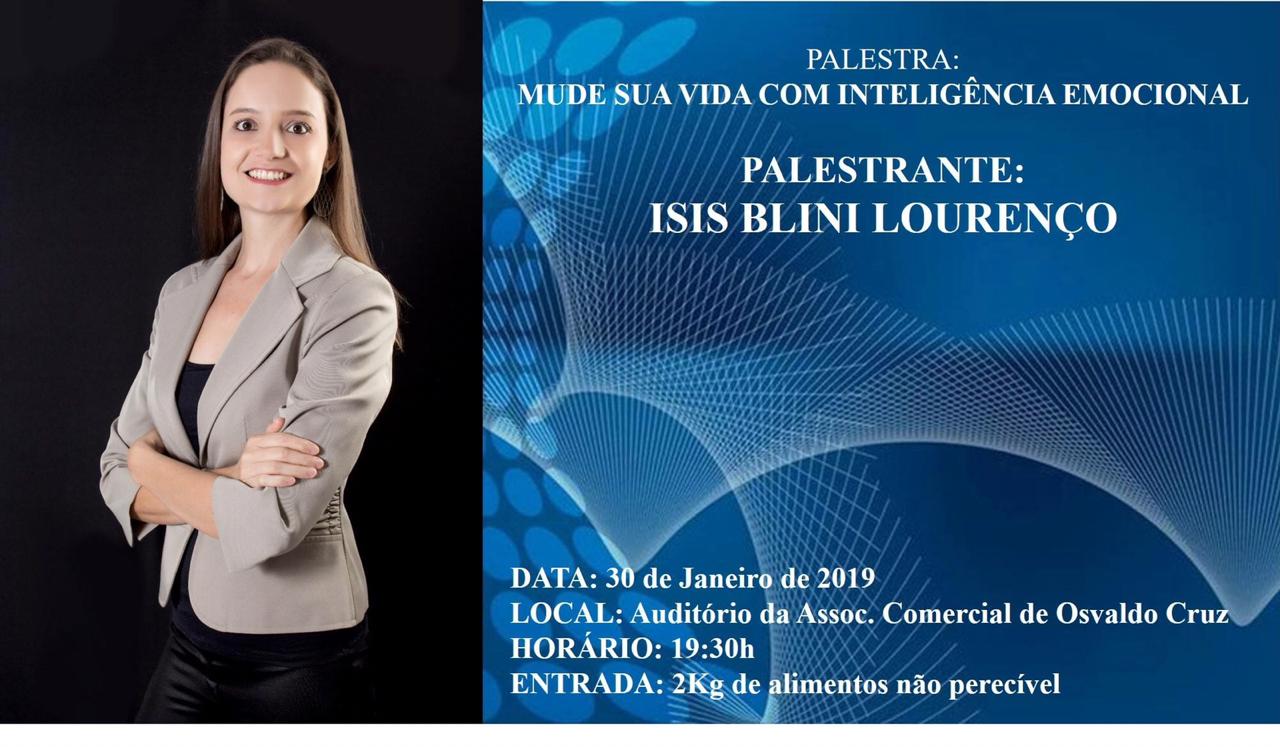 A palestra será ministrada pela Coach, Isis Blini Lourenço, o tema será inteligência emocional e acontece no auditório da ACEOC.