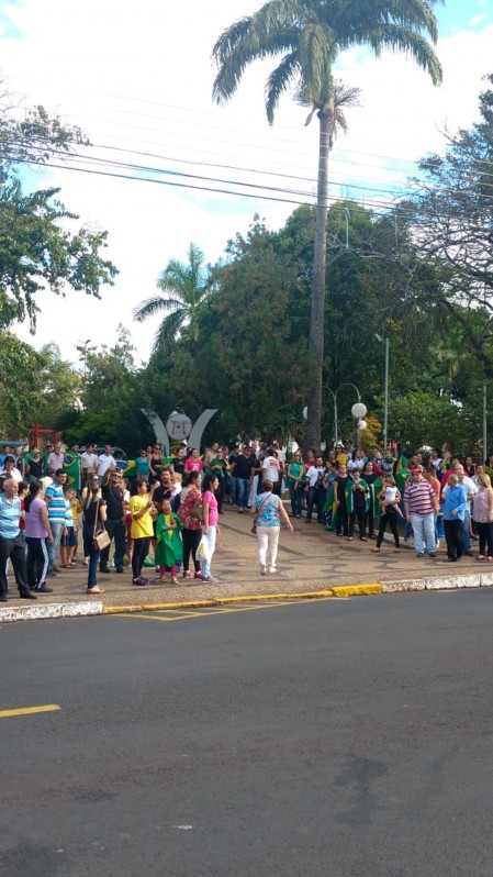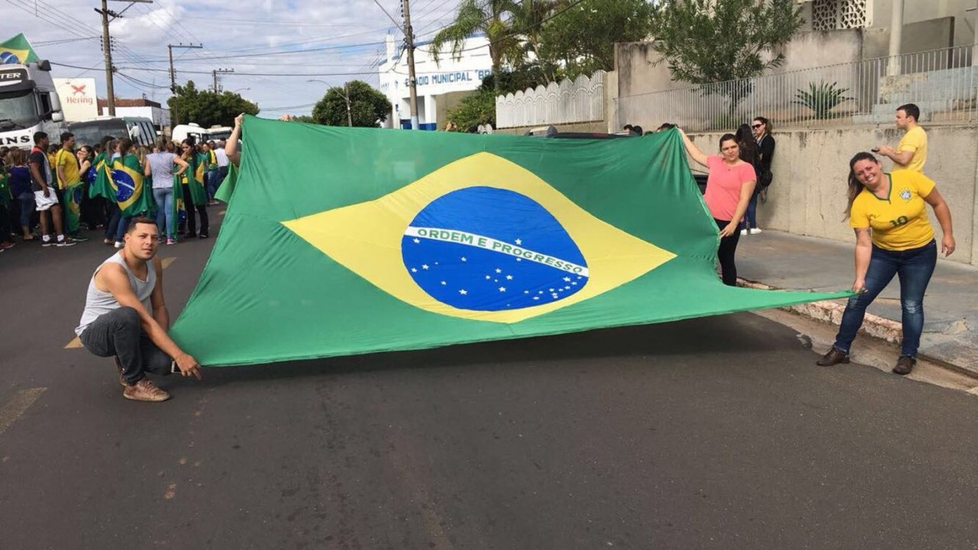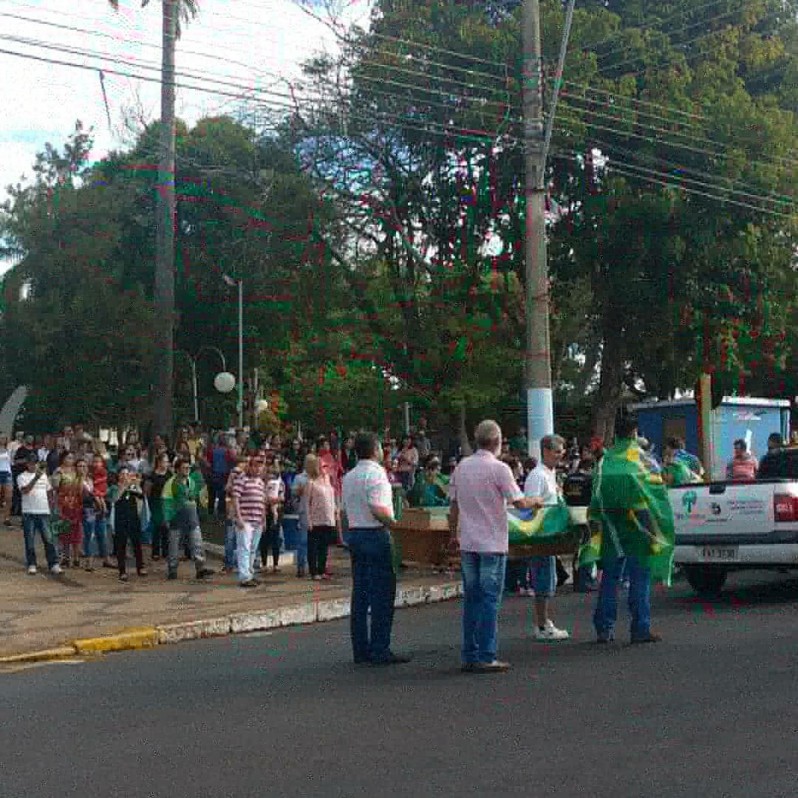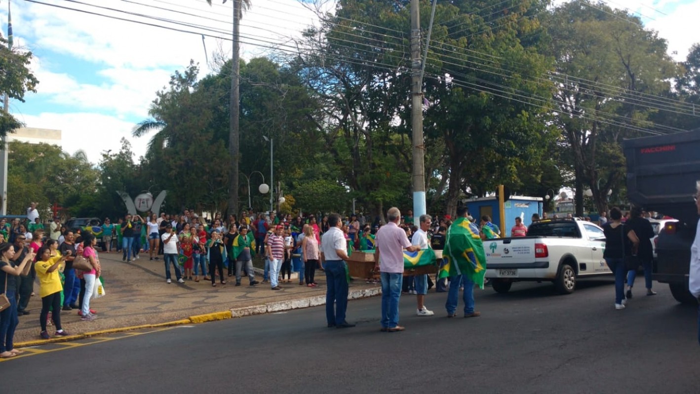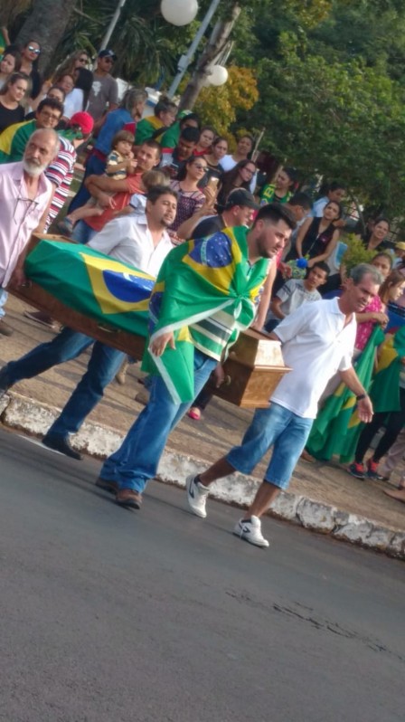 Com muito barulho e bandeiras do Brasil, os participantes cantaram o Hino Nacional na praça da Matriz. Alguns manifestantes carregaram um caixão coberto com uma bandeira do Brasil para simbolizar o enterro do presidente da República, Michel Temer.