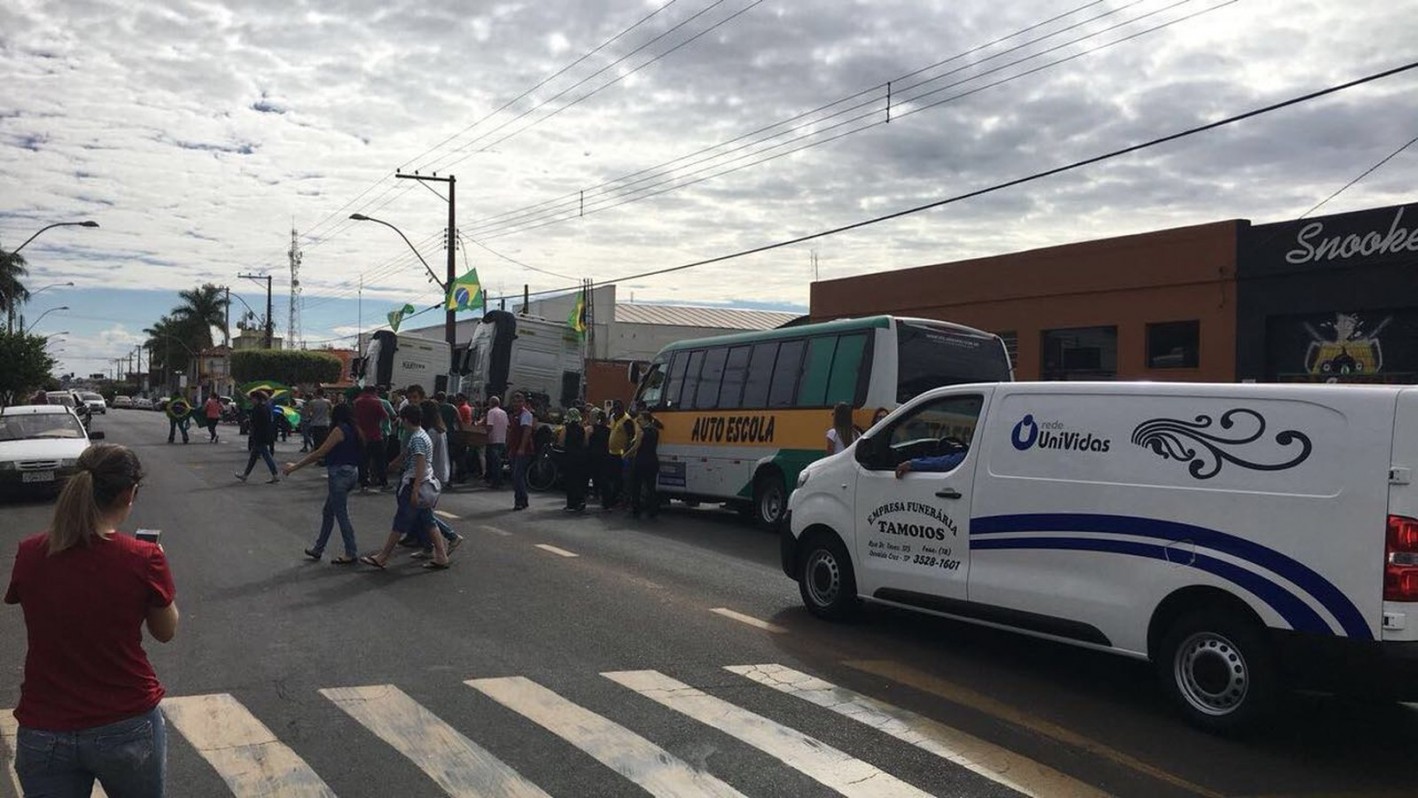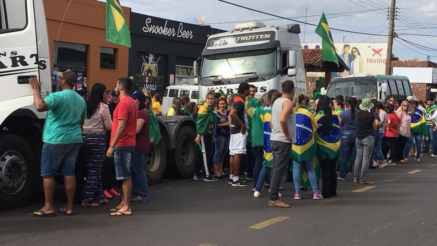 Em forma de carreatas, com caminhões, carros, motocicletas e vans, a manifestação percorreu a Avenida Brasil e terminou na rotatória do Cristo.