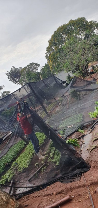 A forte chuva acompanhada de rajadas de ventos que caiu na região na tarde desta segunda-feira (14), provocou prejuízos.