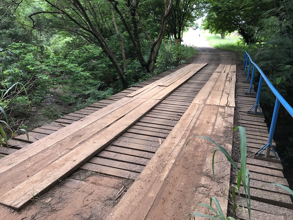 Desde novembro do ano passado a ponte está sem um dos corrimões, o que também foi informado na época pelo vereador à secretaria Municipal de Obras, o que ainda está sem solução.
