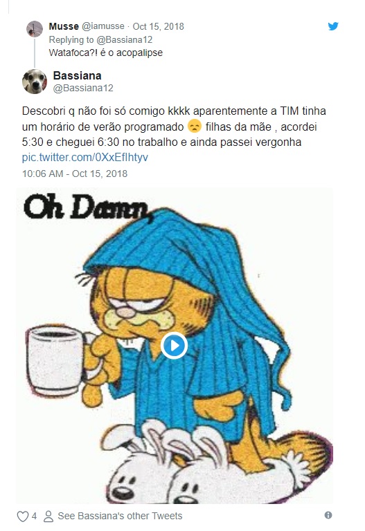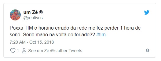No Twitter, muitos consumidores reclamaram ter perdido uma hora de sono em pleno retorno de feriado e cobraram explicações da TIM. A maioria relatou ter um iPhone, mas também houve queixas de donos de aparelhos com sistema Android.
