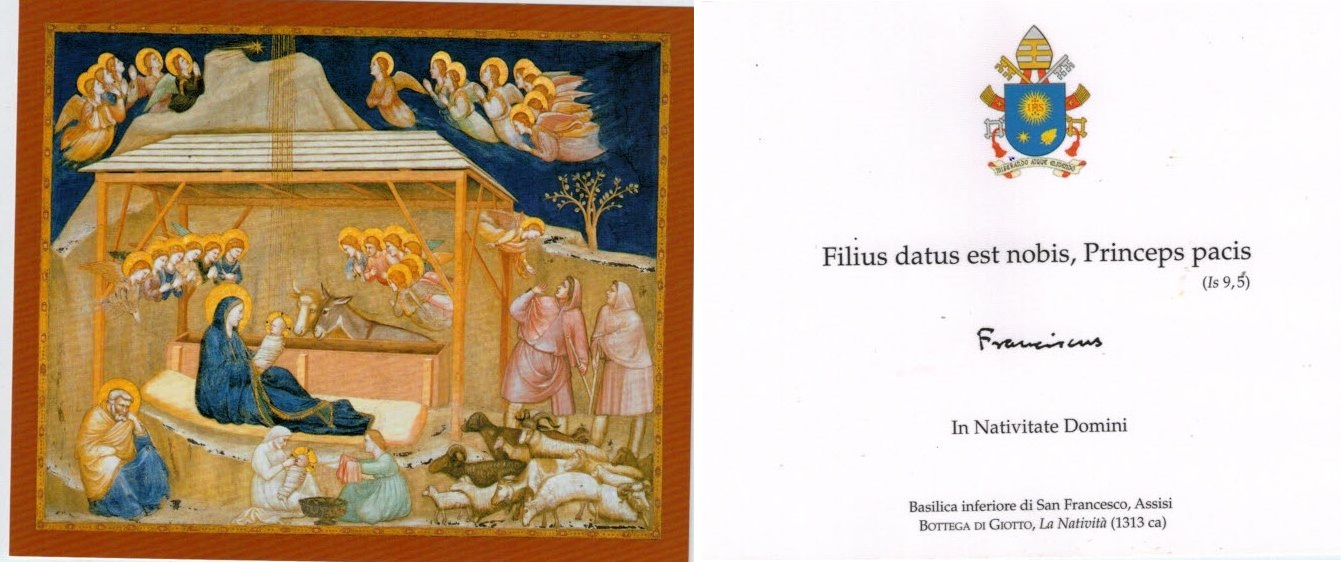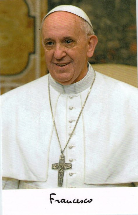 Junto à carta, veio também uma foto do Papa Francisco e um cartão de natal assinados por ele.