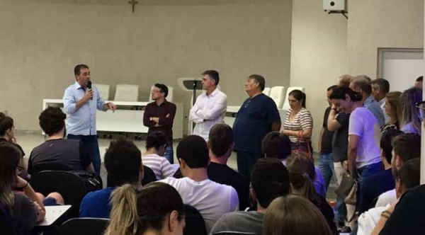 A reunião no auditório do campus 2 contou com a presença do prefeito Márcio Cardim, reitor da UniFAI Porf. Dr. Paulo Sérgio da Silva, professores, pais de alunos e representantes do Centro Acadêmico Doutor César Marinho, formado pelos estudantes de medicina.