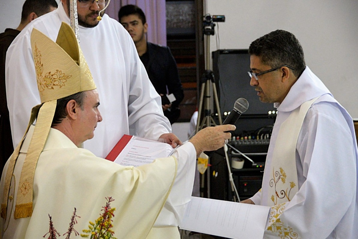 Após refazer sua profissão de fé e renovação das promessas sacerdotais, o Padre Quinzinho foi empossado, por Dom Luiz, como vigário paroquial e recebeu o documento de nomeação e a Sede Presidencial.