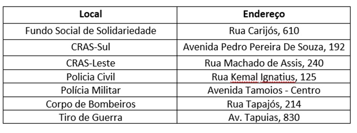 Nos demais dias, a doação de roupas e cobertores pode ser feita nos pontos de arrecadação, no Fundo Social de Solidariedade, no CRAS-Sul ou no CRAS-Leste.