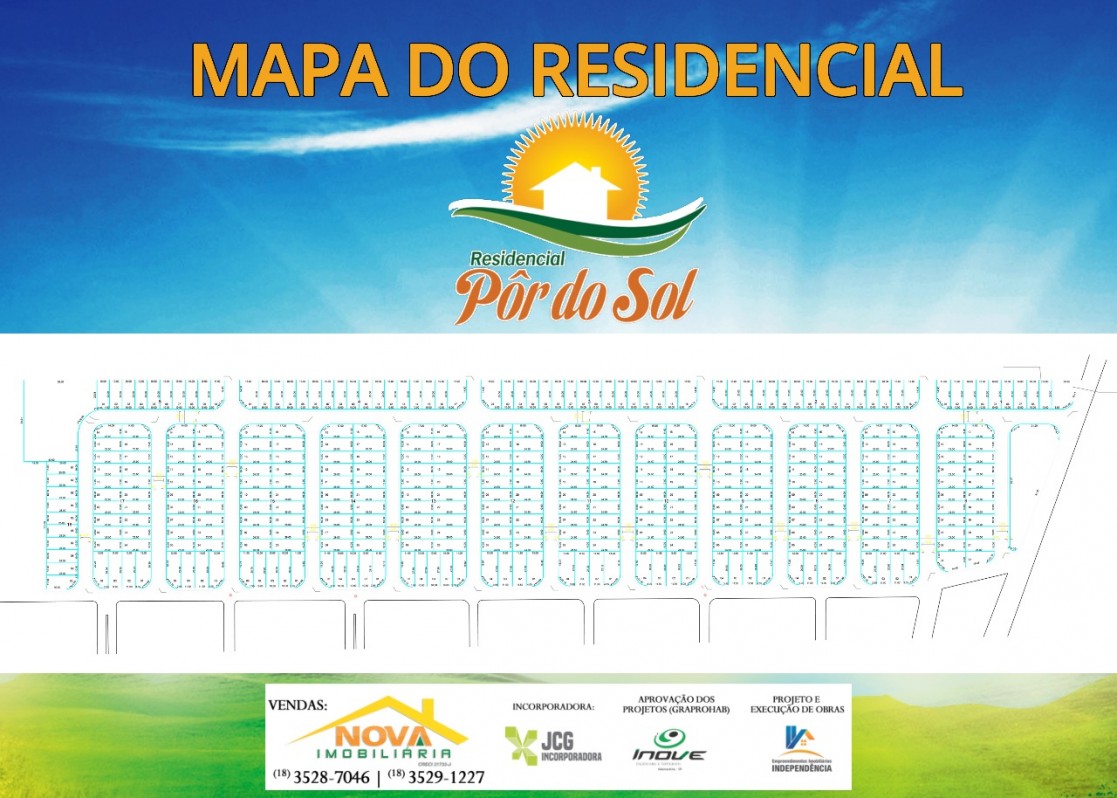 É o Residencial Pôr do Sol, um loteamento muito bem localizado, que vai oferecer para a população de Inúbia Paulista e região, 360 lotes, com toda a infra-estruturar necessária, como, água e esgoto, energia elétrica, guias e sarjetas, um grande reservatório de água e um poço artesiano com aproximadamente 200 metros de profundidade, com água de qualidade, aprovada pelo DAE, órgão responsável pela fiscalização da qualidade da água que será distribuÃda e aprovada também pela Sabesp.