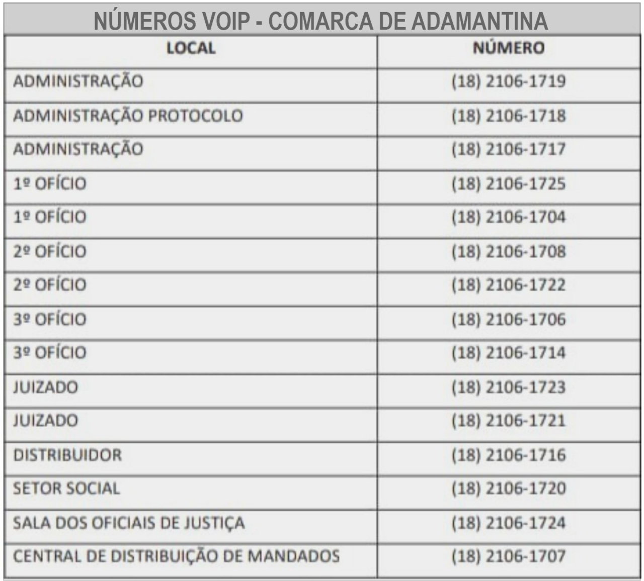 Veja o quadro com os novos números telefônicos do Fórum de Adamantina, divulgado na manhã desta quinta-feira (24):