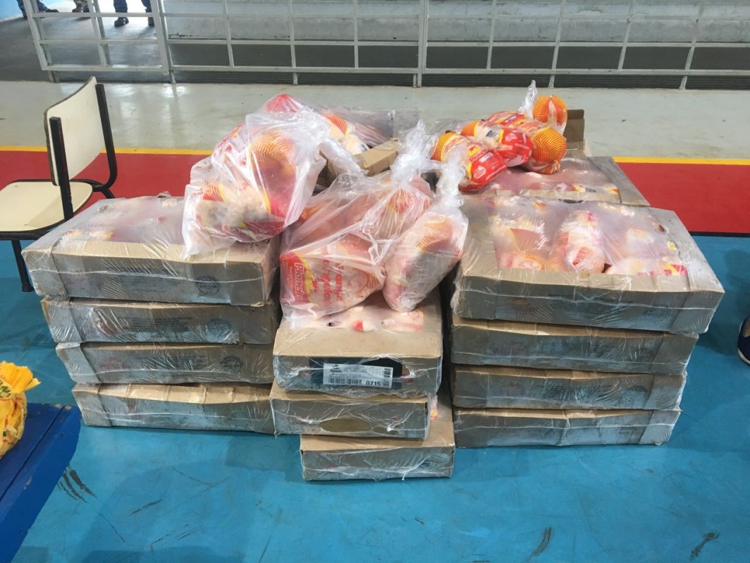 As cestas de almoço de natal foram montadas e entregues para as famÃlias assistidas pelo setor social do municÃpio, na manhã desta sexta-feira, no ginásio de esportes do de Osvaldo Cruz.