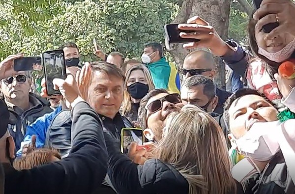 Bolsonaro, que não usava máscara de proteção facial, teve contato com o público no Parque do Povo, onde discursou para os apoiadores.