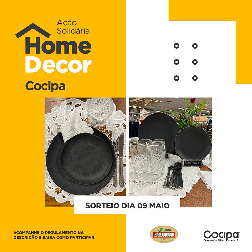 Uma iniciativa do Home Decor Cocipa, no Hiper Cocipa, promove solidariedade e garante um presente especial, mediante sorteio, àqueles que fizerem a doação de 1 kg de alimento não perecível (exceto sal e farinha de mandioca) ou de 1 produto de higiene pessoal, que ao final serão integralmente repassados ao Fundo Social de Solidariedade de Inúbia Paulista.
