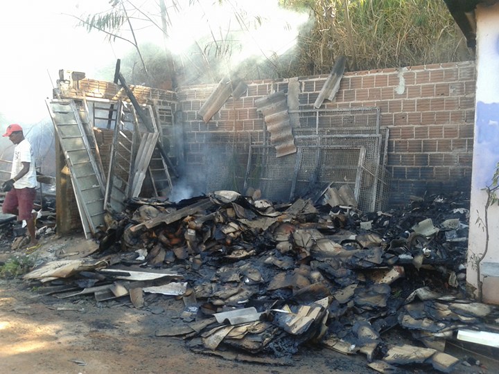 Os PMs entraram em contato com a proprietária, M.C.R.B. e a mesma informou que estava dormindo quando ouviu barulho e gritos. Foi então que saiu e viu o barracão de papelão pegando fogo.
