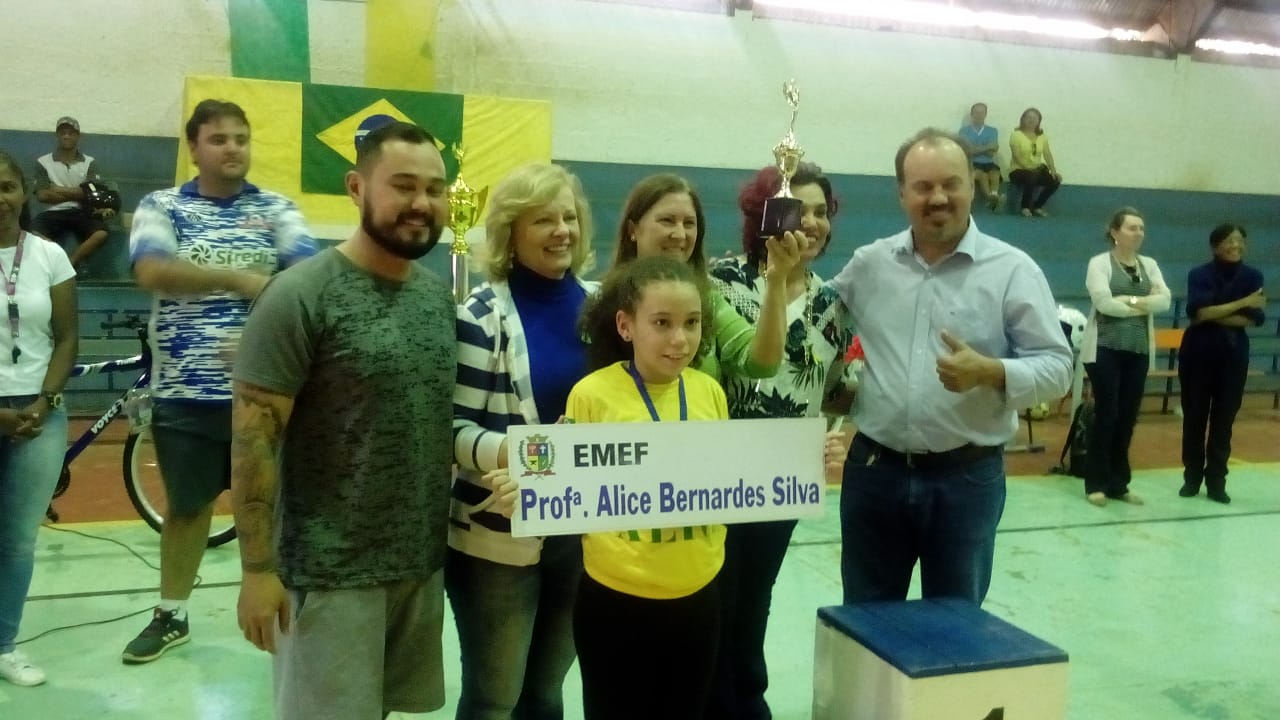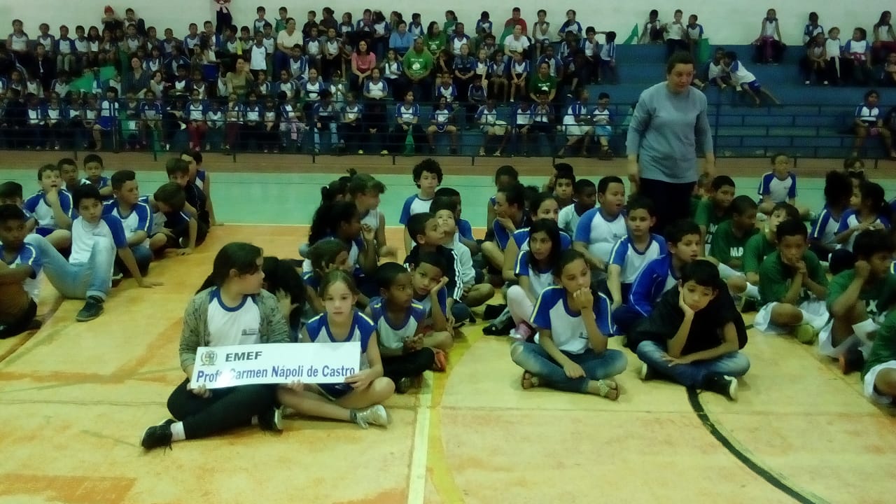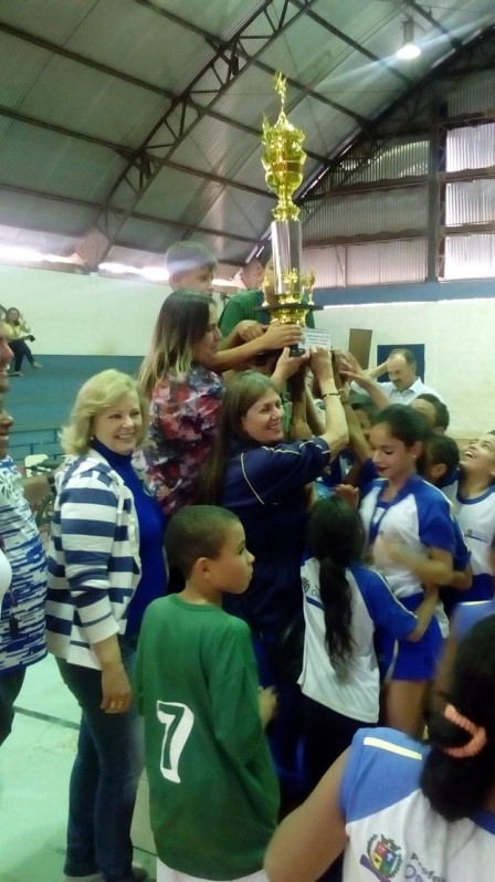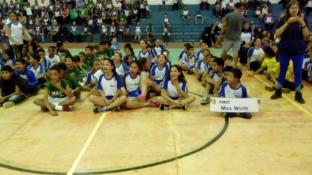 Na tarde desta quinta-feira (06), no Ginásio de Esportes da Escola Max Wirth, aconteceu o encerramento dos V JEM (Jogos Escolares do Município).