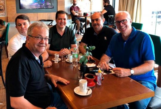 O coordenador do Multiplic, Dr. Cláudio Tonol, em companhia de três coordenadores (Ed Jundi, Prof. Paulo Roberto e Edilson Zanetti) se reuniram em janeiro, com o senhor Wilson Poit, Diretor-Superintendente do SEBRAE-SP e atualmente membro do Conselho Deliberativo do Centro Paula Souza, para debater novos projetos para o Multiplic em benefício do desenvolvimento de Osvaldo Cruz.