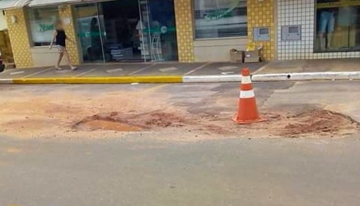 Inconformado com a situação, um comerciante utilizou sua página do Facebook para reclamar, pois o buraco em questão está localizado ao longo da Avenida Santos Dumont, a principal avenida da cidade, onde fica concentrado o comércio e também alguns imóveis residenciais.