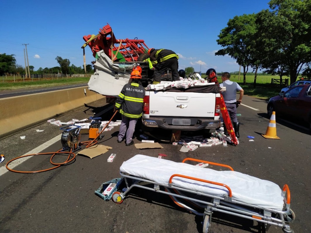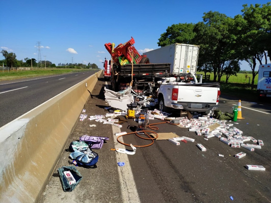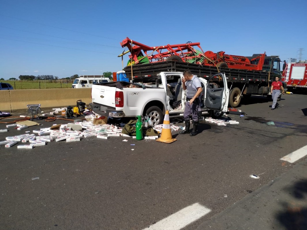 Segundo a corporação, o motorista que dirigia a caminhonete transportava uma carga de cigarros contrabandeados do Paraguai e tentava fugir de uma abordagem da Polícia Rodoviária Federal desde Bataguassu (MS), quando passava pela BR-267.