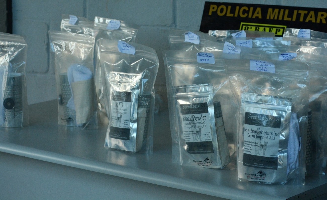Além de drogas sintéticas, como LSD, ectasy, metanfetamina e heroína, a aquisição de essências sintéticas possibilita a localização de explosivos, modalidade a qual a equipe também tem o intuito de formar cães de faro.