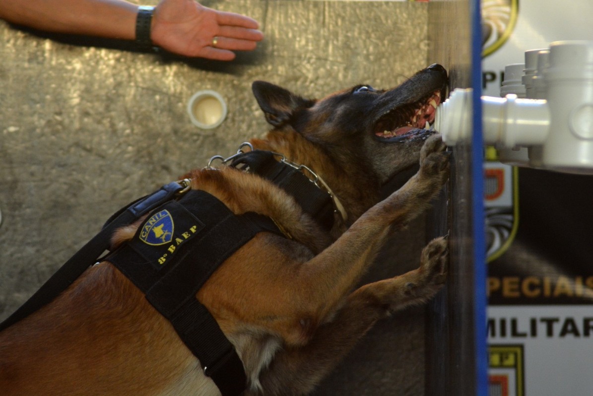O 1° Simpósio de Cães de Faro do 8° Batalhão de Ações Especiais de Polícia apresentou a nova técnica de trabalho com a utilização de essências desenvolvidas em laboratório com concentração do princípio ativo das drogas potencializado.