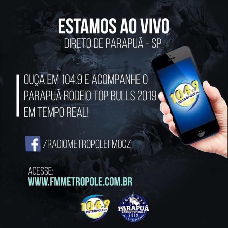 Lembrando que a Rádio Metrópole FM realiza a cobertura do evento. Metrópole FM, A Rádio Oficial do Parapuã Rodeio Bulls 2019.