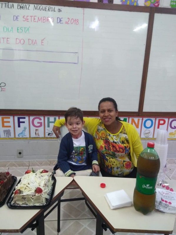 Todos cantaram parabéns e, se a felicidade nesse momento tivesse endereço fixo, ela estaria esta hora na escola Otília Braz Nogueirol na festa surpresa de 6 anos do grande e corajoso Gabriel.