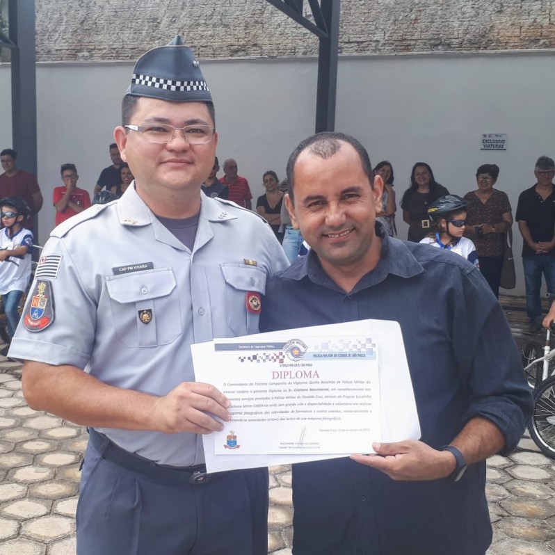 O comandante da 3ª CIA, Capitão PM Alexandre Kihara, entregou aos colaboradores o Diploma de Colaborador da Polícia Militar do estado de São Paulo para algumas autoridades e entidades.