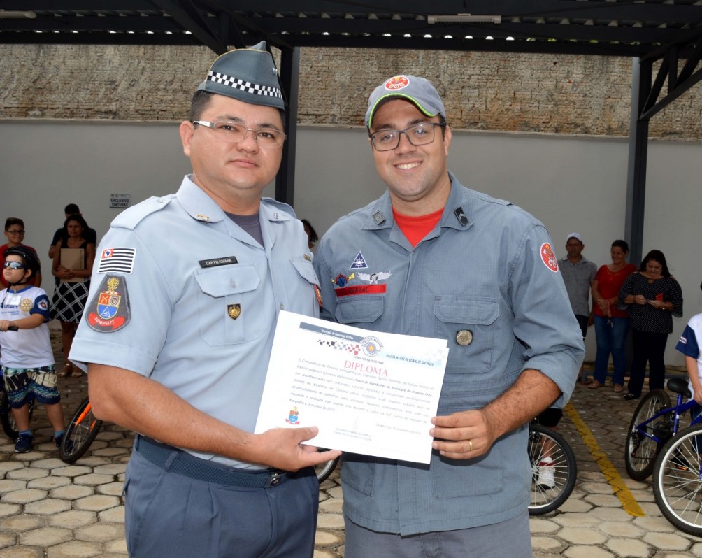 A cerimônia contou com a presença de policiais militares e colaboradores como médicos, Corpo de Bombeiros, Rotary Club de Osvaldo Cruz e Supermercado Casa Aliança.