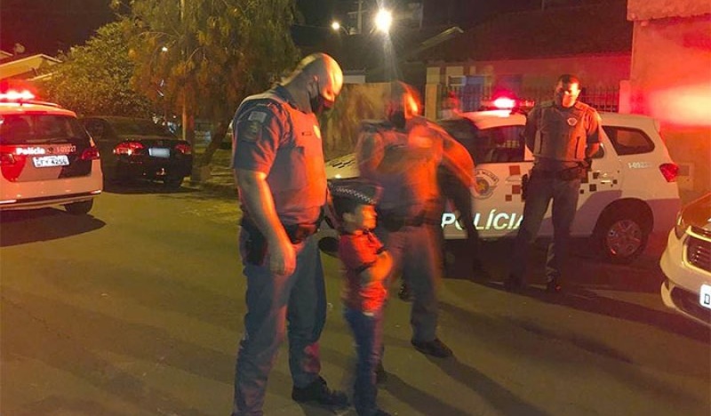Seguindo as recomendações de saúde, os policiais militares usaram máscaras para que todos os presentes, incluindo aniversariantes, familiares e amigos, estivessem protegidos do coronavírus (Covid-19). O convite para o aniversário foi feito pelo pai da criança.