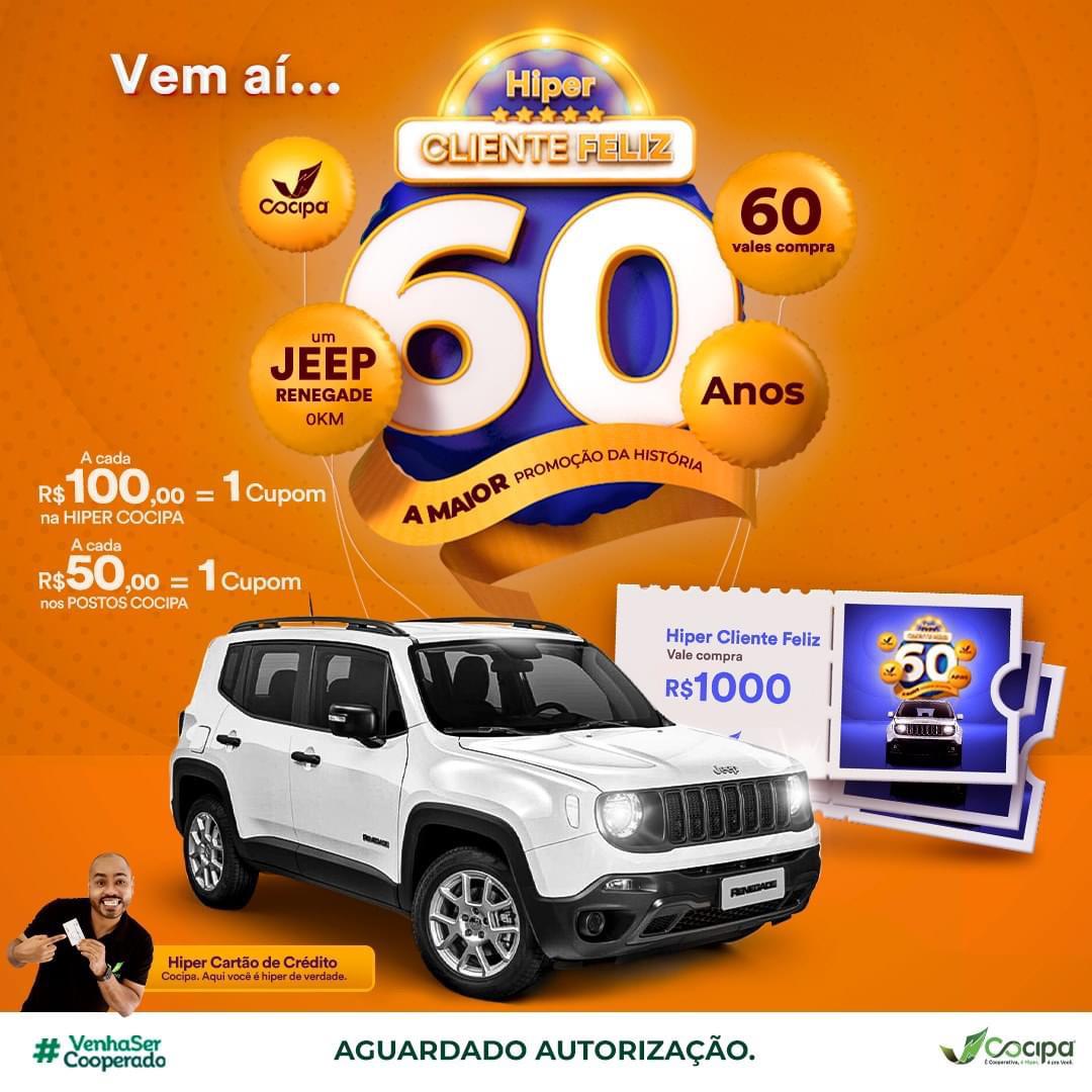 Segundo apurou o SIGA MAIS, a promoção deste ano vai sortear um automóvel Jeep Renegade zero quilômetro e 60 vales-compra de R$ 1 mil cada. O volume das premiações já começa a gerar expectativas entre os consumidores.