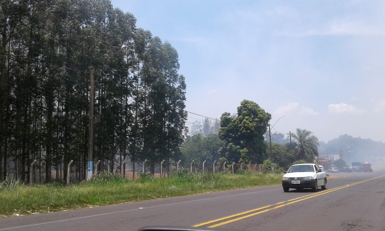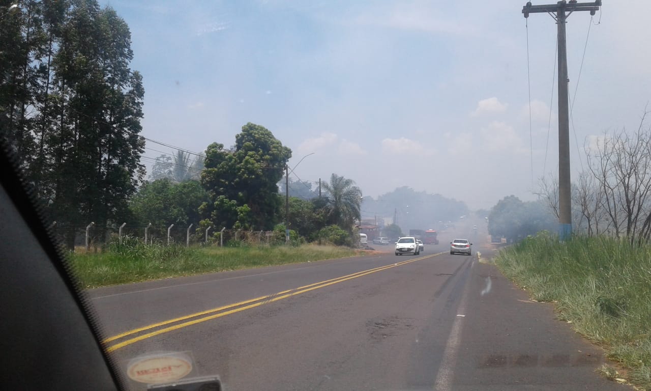 Um grande volume de fumaça assustou quem passava pela Vicinal Roberto Romanini no início da tarde desta sexta-feira (01).