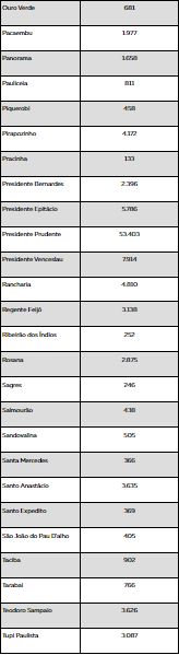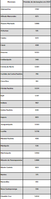 Confira na tabela abaixo a previsão da Receita Federal sobre o número de declarações a serem feitas em cada um dos 53 municípios da região de Presidente Prudente até o dia 29 de abril: