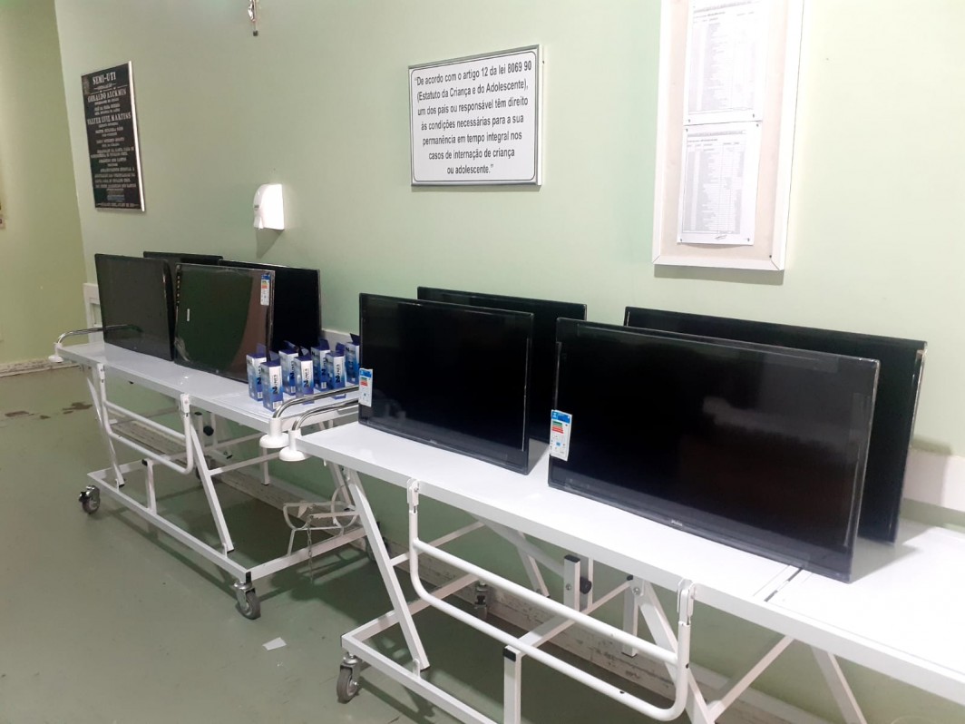 A mesa administrativa da Santa Casa de Osvaldo Cruz fez nesta segunda-feira (12), a entrega de oito aparelhos de tv de 32 polegadas, que serão instaladas na clínica médica para pacientes com Covid-19.