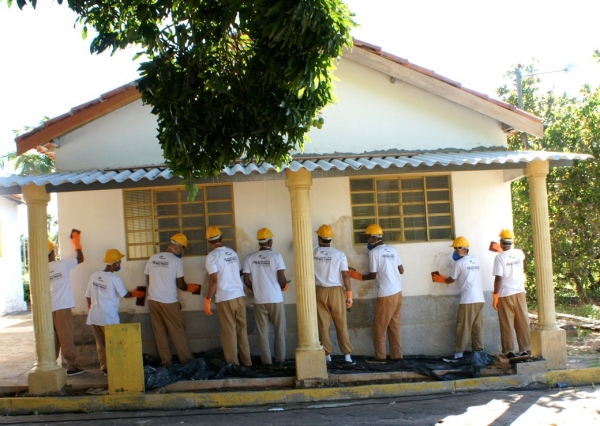 Em uma primeira fase, cerca de quatro reeducandos, pelo perÃodo de um mês, cuidaram da preparação de partes do prédio para a pintura, como reboco, limpeza e substituição de telhados, reparação de forros, limpeza e parte hidráulica.
