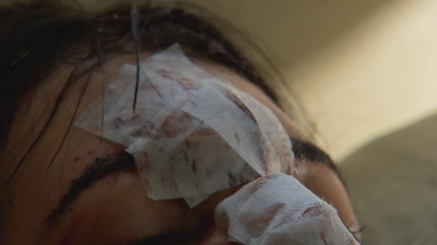 Segundo a mulher, que não quis se identificar devido aos ferimentos no rosto, afirma que ouviu o pneu do ônibus estourando.
