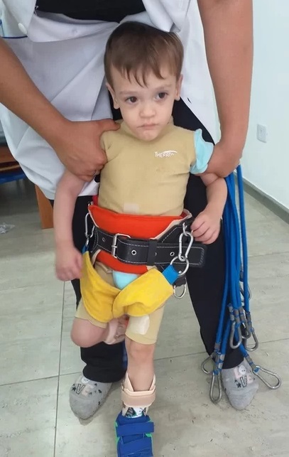 Teve paralisia cerebral, que afetou sobretudo seu lado direito. O menino não tem controle do tronco e pescoço e é deficiente auditivo.