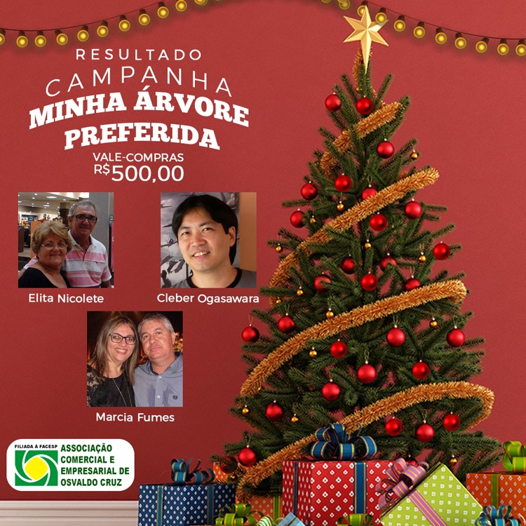 A ACEOC (Associação Comercial e Empresarial de Osvaldo Cruz) fará nesta quinta-feira(10), a entrega dos prêmios do concurso Minha Árvore de Natal Preferida, realizado no último mês de dezembro no comércio local.