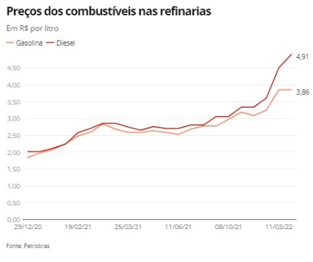 Com o novo reajuste, o diesel já acumula no ano alta de 47% nas refinarias da Petrobras.