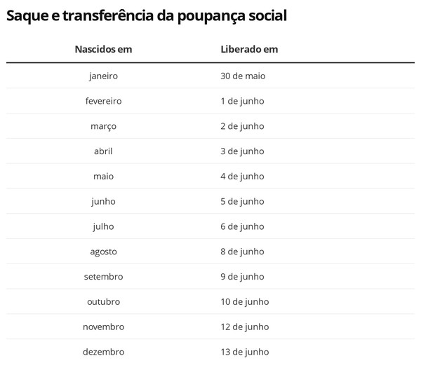 A partir de 30 de maio (veja o calendário 3 abaixo), a Caixa começa a liberar saques e transferências a partir dessas contas. Para os trabalhadores que receberam a primeira parcela em outra conta, o dinheiro que ainda estiver na poupança digital será transferido automaticamente nas datas desse mesmo calendário.