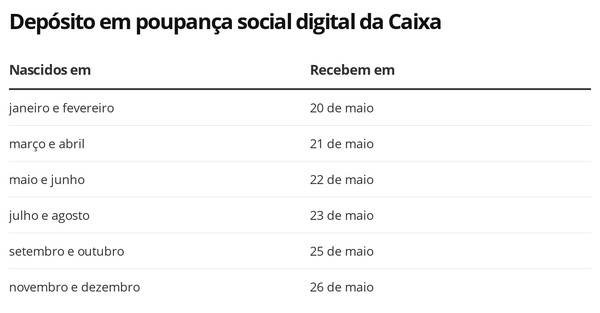 Segundo portaria sobre o calendário, assinada pelo ministro Onyx Lorenzoni, quem recebeu a 1ª parcela até 30 de abril receberá o crédito da segunda parcela em poupança social digital a partir de quarta-feira (20), de acordo com a data de nascimento.