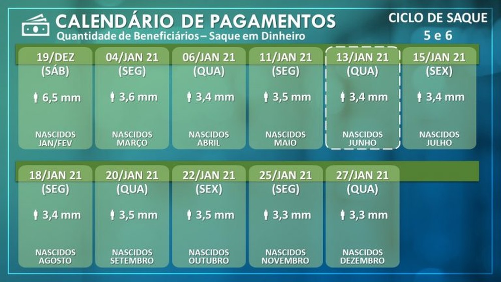 Recebem nesta terça os trabalhadores nascidos em dezembro, que não fazem parte do Bolsa Família: 3,2 milhões vão receber uma parcela do Auxílio Emergencial extensão, de R$ 300; enquanto outros cerca de 50,3 mil mil ainda vão receber parcela de R$ 600.