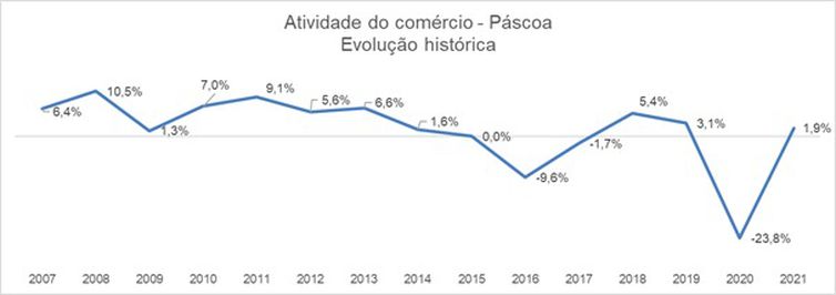 A ligeira alta acontece em relação ao índice negativo registrado ano passado (6 a 12 de abril de 2020), que chegou a 23,8%, o pior resultado de toda a série histórica, iniciada em 2007.