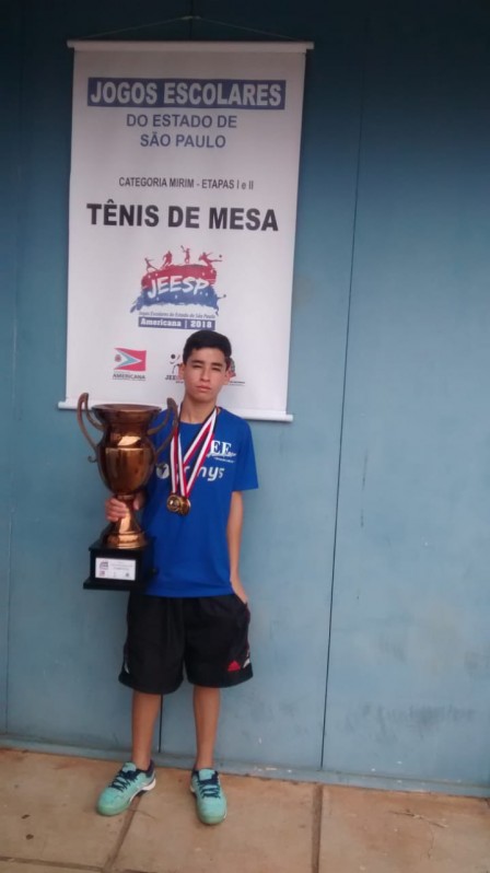 Os atletas que estudam e treinam na escola, competiram com alunos de todas as escolas do Estado e conquistaram esse título importante para o município vencendo na competição por equipes e também na modalidade Tênis de Mesa Individual, com o atleta Mateus Henrique de Almeida, que além do título, ainda foi considerado o melhor Mesatenista do campeonato em sua categoria.