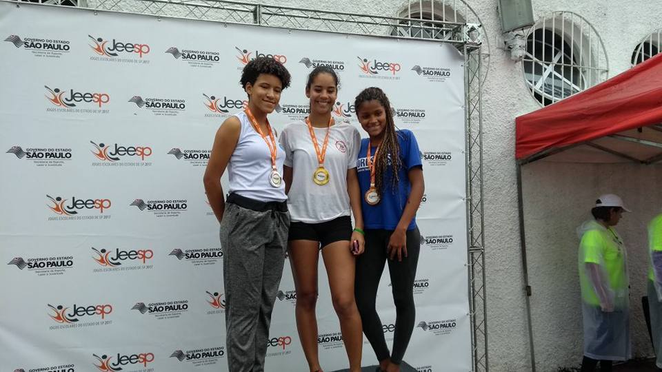 Foram quatro tÃtulos estaduais conquistados pelos atletas osvaldocruzenses, sendo, Caio VinÃcius, campão no Salto em distância masculino, João Pedro da Silva foi campeão estadual na prova do arremesso de peso e terceiro colocado no arremesso do disco e a atleta Ranaia foi a campeã nas provas dos 75 e dos 250 metros.