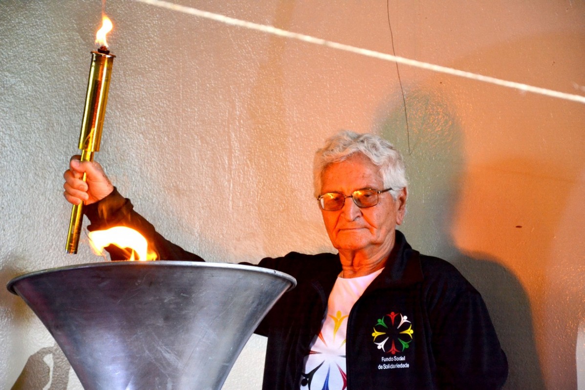 Logo após a primeira-dama do Estado decretar aberta a competição, os atletas adamantinenses Maria do Carmo de Paiva Zapparoli (Carminha) e José Pereira de Souza Filho (Professor Paulista), conduziram a tocha e acenderam a pira com a chama olÃmpica, momento de muita emoção que marcou o inÃcio da segunda edição dos Jogos Regionais do Idoso em Adamantina.