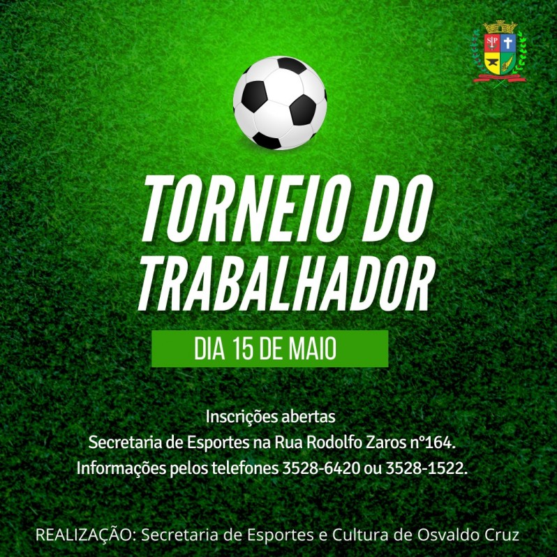 A Secretaria Municipal de Cultura, Esportes e Turismo abriu inscrições para equipes interessadas em participar do Torneio de Futebol do Trabalhador, que acontecerá no próximo dia 15 de Maio.