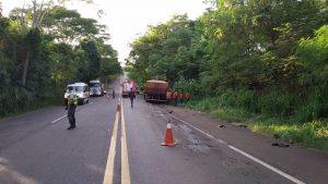 Foi atendido na área do 3º pelotão da 2ª Cia da Polícia Rodoviária, uma ocorrência de acidente de Trânsito de natureza Colisão Frontal, envolvendo um automóvel GM Cruze, cor branca, com placas de Presidente Prudente e um caminhão Mercedes Benz, cor vermelha, com placas de Dracena, resultou em uma vítima fatal, o condutor do automóvel, um homem de 28 anos, natural de Presidente Prudente.