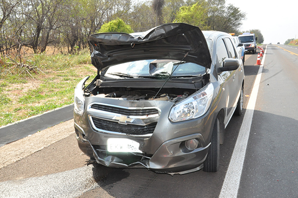 Ao perceber o acidente, a condutora de um veículo VW Gol reduziu a velocidade, momento em que houve a colisão traseira com um GM Spin que também seguia na mesma direção.