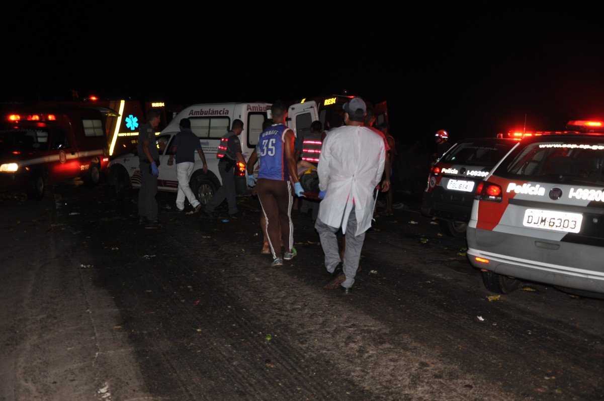 A carga do caminhão ficou espalhada pela pista. Bombeiros das cidades de Osvaldo Cruz, Tupã e Presidente Prudente trabalharam no socorro à s vÃtimas desse grave acidente. Os ocupantes do caminhão e do carro tiveram apenas ferimentos leves, três dos 23 feridos estão em estado grave, Outros 15 tiveram ferimentos leves e foram liberados após atendimento na Santa Casa de Parapuã. Das duas pessoas que foram encaminhadas para a Santa Casa de Osvaldo Cruz, uma foi liberada e a outra transferida para a Santa Casa de Tupã. Dos seis feridos que foram levados para a Santa Casa de Rinópolis, dois permanecem internados, um foi transferido para a Tupã e três foram liberados.
